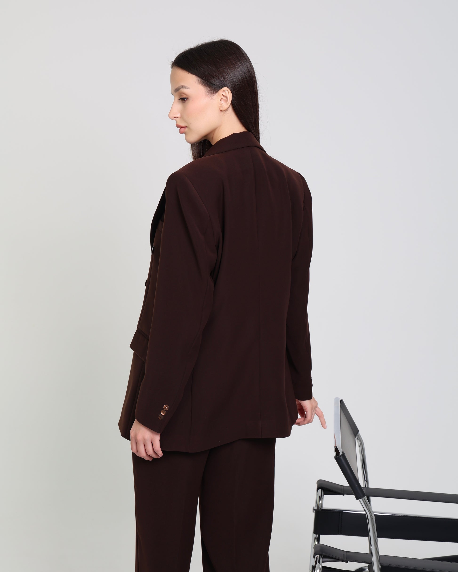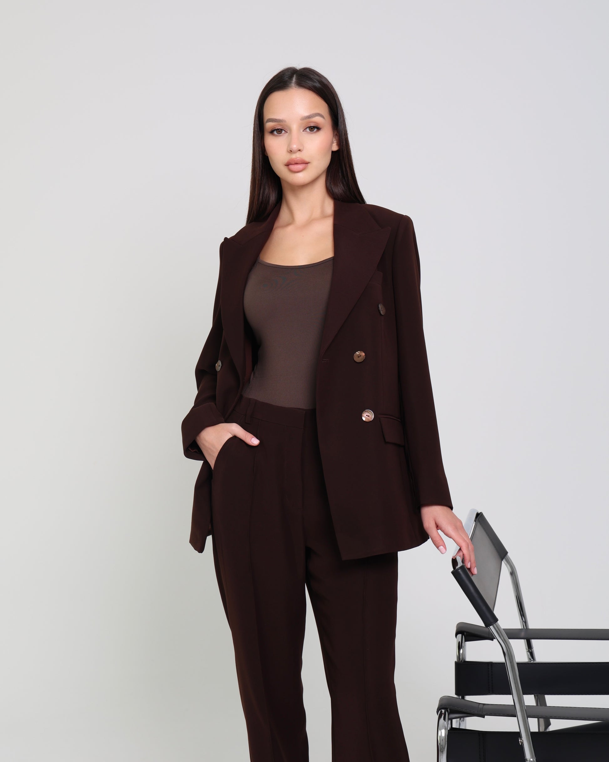 The Terra Suit delivers grounded sophistication and timeless style. Designed in a deep chocolate brown hue, this suit pairs refined tailoring with understated femininity, making it the perfect balance between modern design and classic elegance.